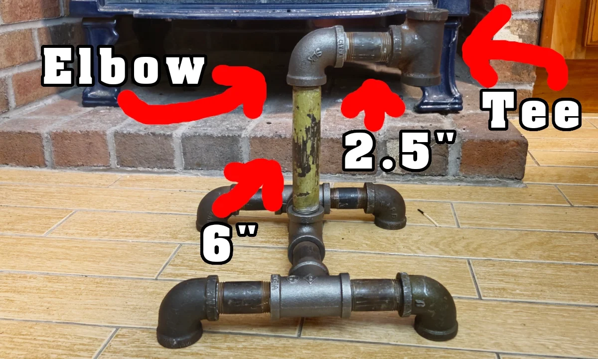 For the next step we will need 1 more tee, a 6 inch nipple, another 2.5 inch nipple, and an elbow.