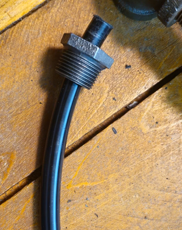 For this step, if using the ⅜ inch tubing you can substitute a plug for the bushing. Plugs tend to be cheaper so this may be worth your while. You should be able to drill a ⅜ inch hole through the plug without compromising its structural integrity too much so you can pass the tubing through the plug instead.